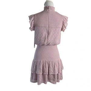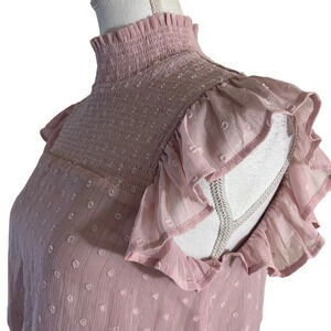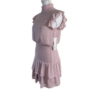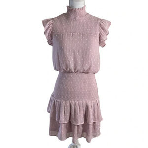 Aqua NEW Pink Swiss Dot High Neck Dress Size Small Short Sleeves Seersucker