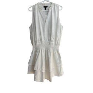 Aqua NWT White Sleeveless Smocked Waist Linen Blend Mini Dress Size Large