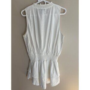 Aqua NWT White Sleeveless Smocked Waist Linen Blend Mini Dress Size Large