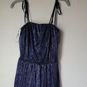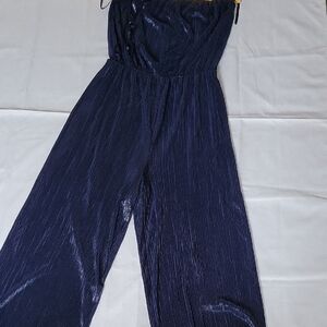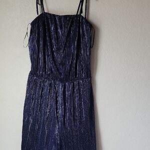 Aqua Navy Blue Croped Shine Jumpsuit Size S