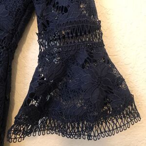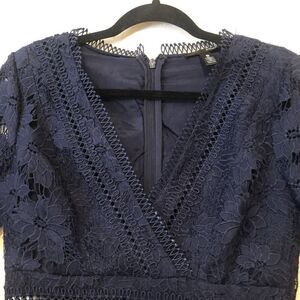Aqua Navy Blue Lace Fit and Flare Coquette Mini Dress Size M