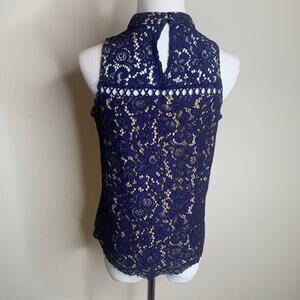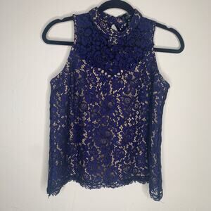 Aqua Navy Blue Lace Sleeveless Blouse Sz Medium