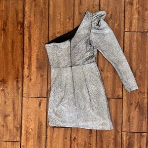 Silver one shoulder, puff shoulder, asymmetrical, shimmer bodycon dress by Aqua