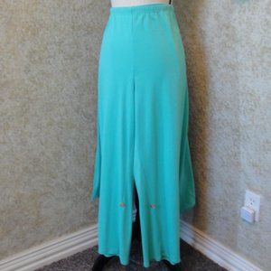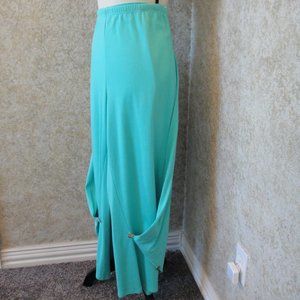 This pair of pants by r. Browning is the most gorgeous shade of aqua ever! They're 100% soft pima cotton, machine washable and have the ability to be styled as you choose. Each leg has a loop and several buttons allowing you to button the legs as you desire ... or not at all! They are quite unusual and fun. The pants are a size Large with an elastic waist measuring about 16 1/2" across at ease, stretching to about 21" across. The inseam is about 27" but can vary depending on your button choice. Waist to crotch measures about 14" front, 18" back. They are in excellent condition with no flaws noted. Please, feel free to make an offer - I’ll accept or present a counteroffer OR add your ‘likes’ to a Bundle and I’ll send a private offer just for you. I’m happy to answer questions to clarify anything I have not described in enough detail. The goal is for you to be informed about the item and extremely pleased if you choose to purchase it.