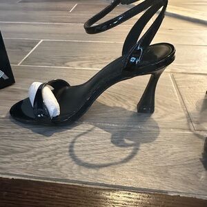 Aqua Patent Black Sexy Stiletto Heels with Ankle Strap Size 6 with boxWorn once!
