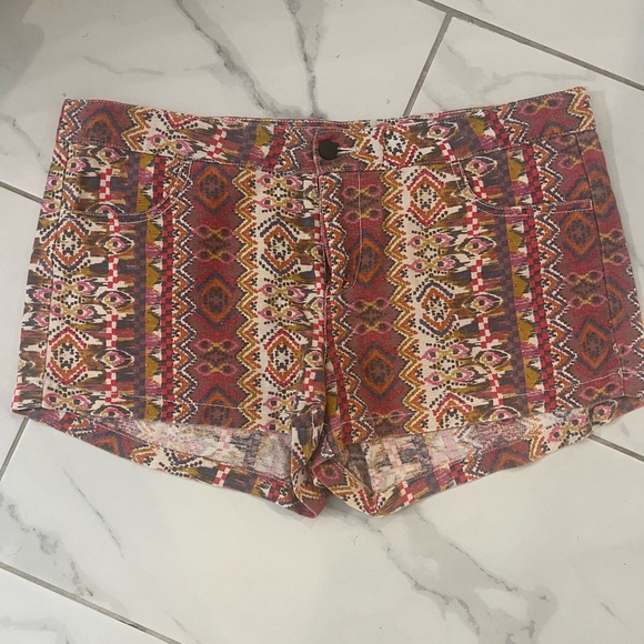 Vibrant patterns. Features red and brown tones. Never worn.