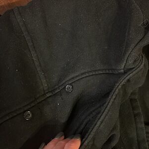 The Perfect Black Cotton Pea Coat - Super Comfortable - Can Layer - You can wear the hoodie or take it off, buttons attached. Super cute coat