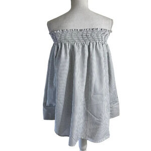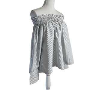 Aqua Pinstripe Off The Shoulder Blouse Size Small Seersucker Flowy Spring Summer