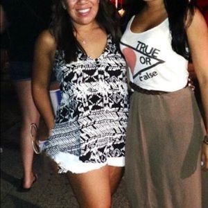 - Geometric print (black with brown/grey)
