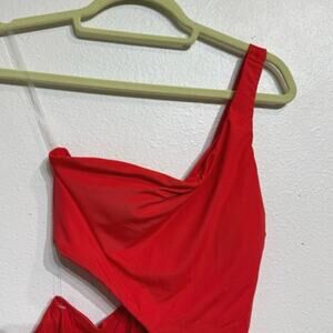 Aqua Red One Shoulder Cut Out One Piece Swimsuit Sz M NWT