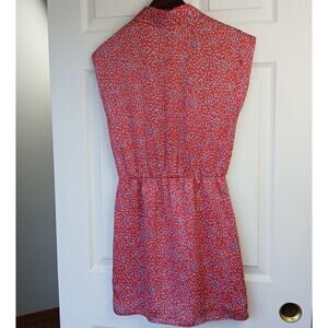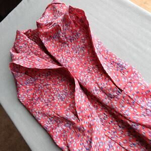 Aqua Red Satin Wrap Dress XS sleeveless blouson collared V-neck elastic waist