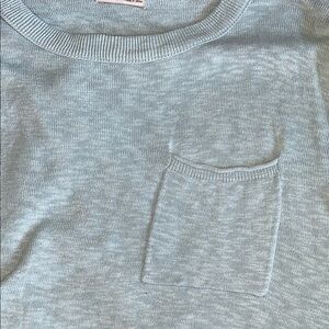 This sweater offers a relaxed fit with long sleeves, perfect for casual comfort. Its soothing blue-green hue and classic crew neckline make it a versatile wardrobe staple. Ribbed details enhance its laid-back style.
