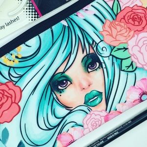 Cure & colorful makeup-bag for on the go energy touch ups. Small but ideal for on the go party/events. Made with durable cotton mesh material and direct to garment printing. This makeup bag will last you for days, ( product comes with makeup shown in the picture)