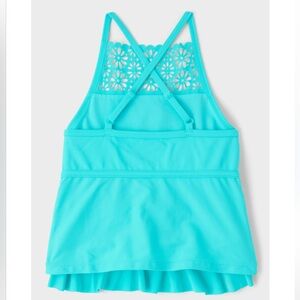 This charming aqua bikini set features playful ruffles, perfect for beach adventures. Enjoy the vibrant color and comfortable fit.