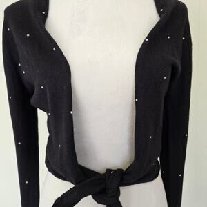 Aqua Silk Cashmere Open Front Cropped Sweater Tie Waist Size M Casual Chic
