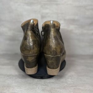Aqua Sofft Boots Womens 11 Green Camo Waterproof Wedge Ankle Booties Zip Ruched