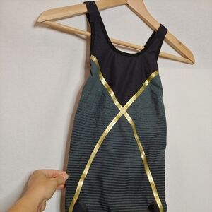 Aqua Sphere Matrix Open Back Competition Swimsuit Tech Suit Black Gray Gold 30 4