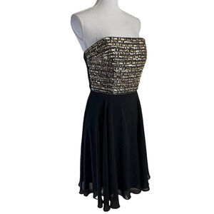 Aqua Strapless Beaded Sequins Dress Size 8 Short Lace Up Backside Black and Gold