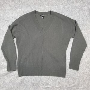 Aqua Sweater Womens Small Cashmere V-Neck Green Soft Pullover Classic Minimalist
