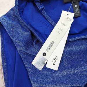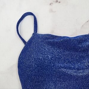 Aqua Swim Bathing Suit Womens XS One Piece Square Neck Sapphire Blue Glitter