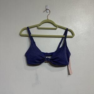 Aqua Swim Blue Metallic Twist Front Bikini Swim Top Sz M NWT