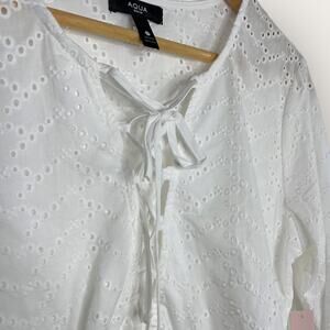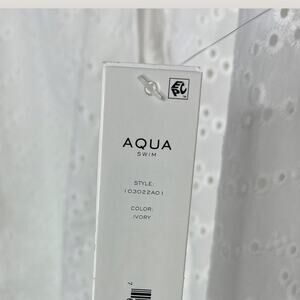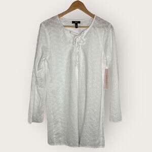 Aqua Swim Cotton Eyelet Tunic Swim Cover-Up | Small | Ivory Lace Up V-neck Boho