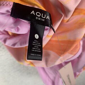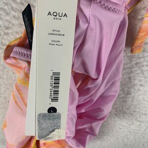 Aqua Swim One Piece Swimsuit Women's Large Pink Multi Swirl Print Cutout S9814.
