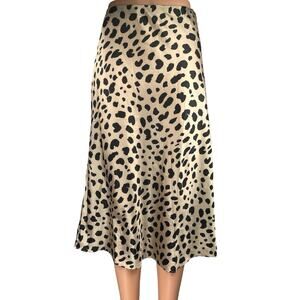 Aqua Tan Black Silk Satin Leopard Animal Print Midi A-Line Flared Slip Skirt Size S
