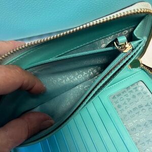 Aqua Teal Kate Spade Oliver Street Megan Grace Blue Leather Zip Around Wallet