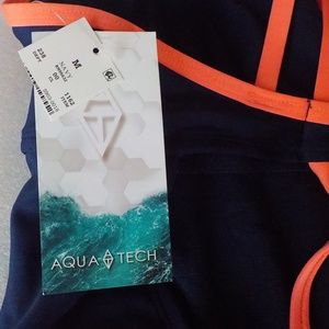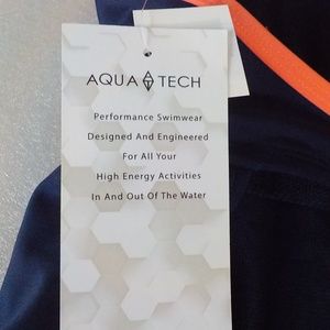Aqua Tech Navy/Coral One Piece Swim Suit NWT