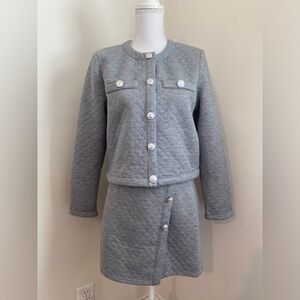 Aqua Two- Piece Set Quilted Cropped Jacket and Skirt Heather Gray Sz M