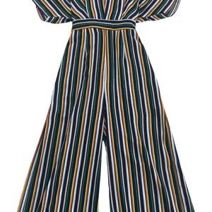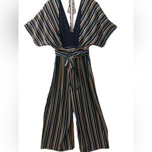 Aqua VNeck Stripe Wide Leg Cropped Jumpsuit Size XS