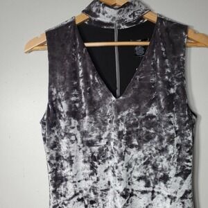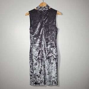 Aqua Velvet V-Neck Choker Sleeveless Mini Dress Silver Size Medium
