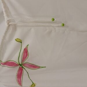 Aqua Viva Sheer White W/ Hand-Paintd Floral Swimsuit Cover Pants - Size Medium