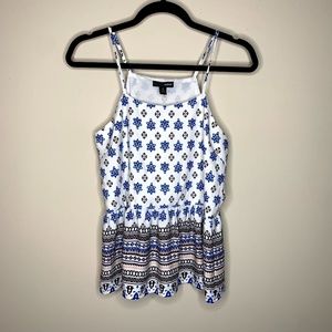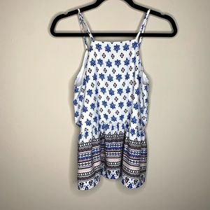 Aqua White Blue Printed Peplum Tank Top XS