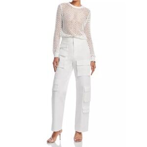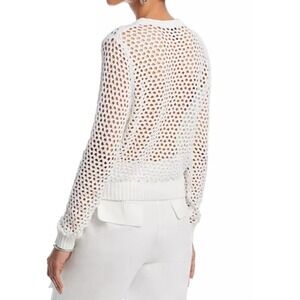 Keywords: crochet knit sweater, crystal embellished top, white pullover sweater, long sleeve sweater, open knit top, bohemian sweater, festival sweater, beach coverup, women's sweater, AQUA sweater, knit top, layered sweater, relaxed fit sweater