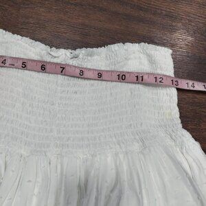 Aqua White Smocked Hips Pom-Pom Trim Ruffled Tiered Mini Skirt Size Large, No issues to state