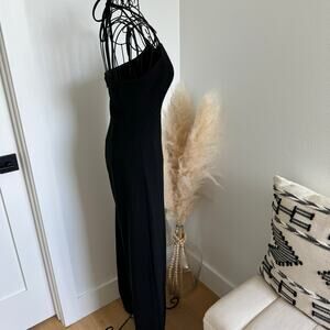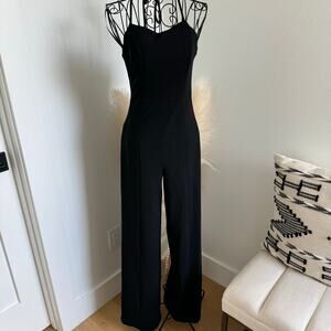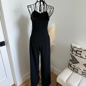 Aqua Wide Leg Black Halter Cocktail Party Evening Minimalist Jumpsuit NEW XS