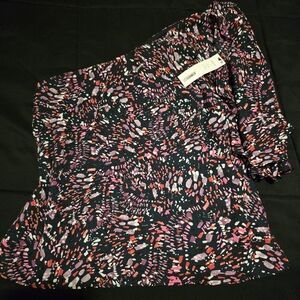 NWT Aqua Women’s Abstract One-Shoulder Flutter Sleeve Top Red & Purple – Size X-Small