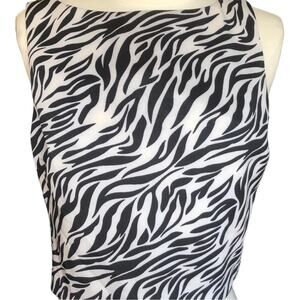 Aqua Womens Animal Print Crop Sleeveless Black White Animal Print Top Medium