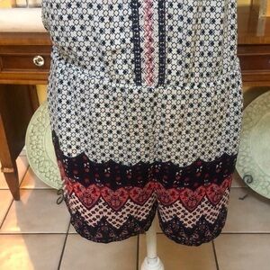 Aqua Women’s Blue and Red Sleeveless Halter Top Bohemian Romper Size Small