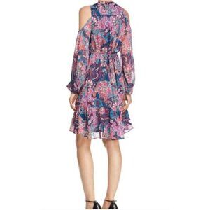 Aqua Women's Boho Dress Size M Floral Cold Shoulder Sheer Sleeves V-Neck Pockets