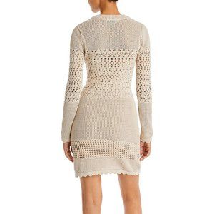 Aqua Womens Crochet Mini Lace-Up Sweaterdress