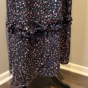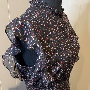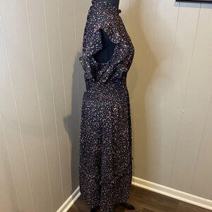 Aqua Women’s Large Black and Pink Ruffle Smocked Maxi Dress