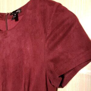 Aqua women’s maroon suede feel short sleeve dress large. Gently used condition. Measurements are: 34” from shoulder to hem, and 17 ½" from armpit to armpit