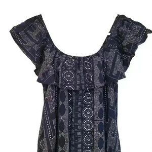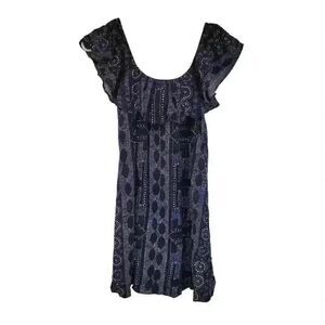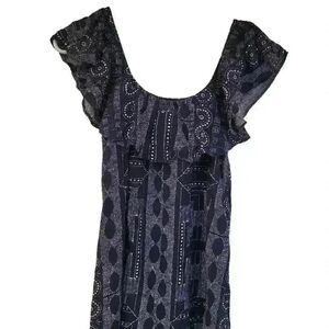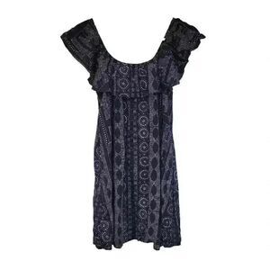 Aqua Women's Navy & White Rayon Geometric Print Off Shoulder Summer Mini Dress EUC sz XS