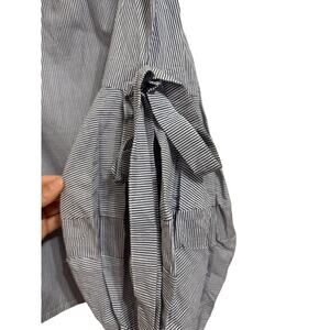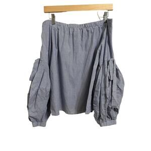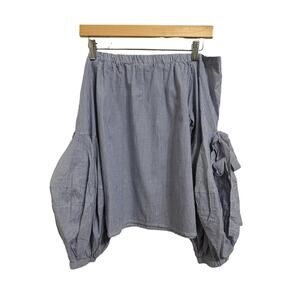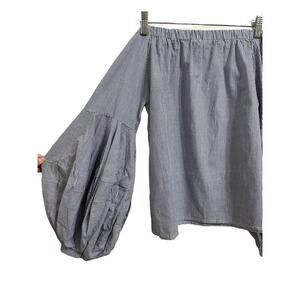 Aqua Women's Poplin Blue Pinstripe Off The Shoulder Bishop Sleeve Blouse Size XS