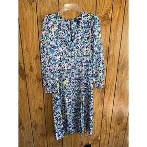 Aqua Women's Printed V-Neck Midi Dress Puff Sleeve Party Multicolor Size XS