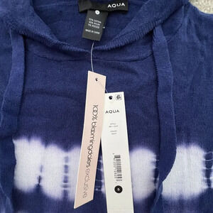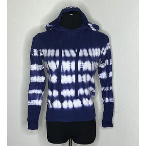 Aqua Womens Pullover Sweater Small Navy Blue Tie Dye Stripes Long Sleeve Hooded
