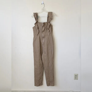 Aqua Women's Ruffle-Sleeve Tan Jumpsuit Large